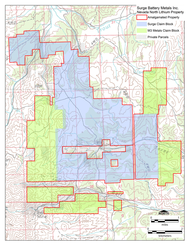 July 26, 2023: West Vancouver, BC; Surge Battery Metals Inc. (the “Company” or “Surge”) (TSXV: NILI, OTC: NILIF, FRA: DJ5C) is pleased to announce a significant expansion of its land holdings at the Nevada North Lithium Project (“NNLP”) through additional claim staking by the Company (100% interest without any royalties) and by way of an Agreement with M3 Metals Corp (“M3M”).