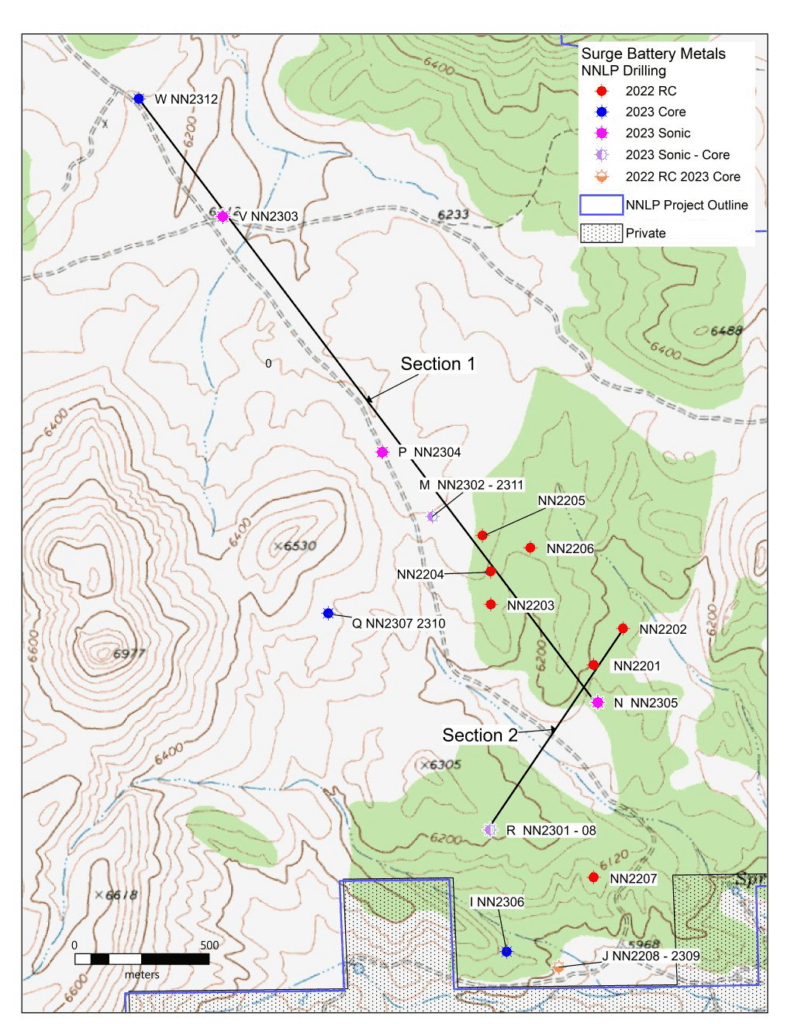 November 16,2023: West Vancouver, BC; Surge Battery Metals Inc. (the “Company” or “Surge”) (TSXV: NILI, OTC: NILIF, FRA: DJ5C) is pleased to report that the Company has received completed assays from the sonic drilling component of the 2023 drilling campaign at the Nevada North (NNLP) lithium clay deposit. We are now awaiting results on a further seven diamond drill holes comprising the second component of the 2023 program.