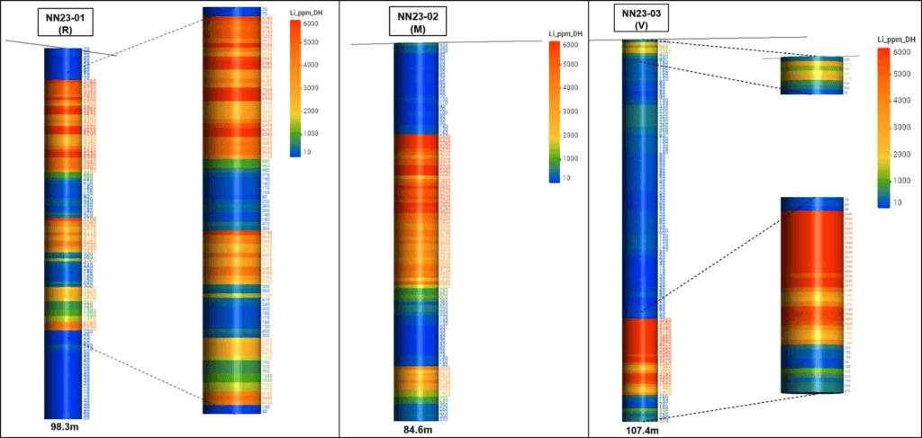 • Achieving the highest-grade lithium assays to date with up to 8,070ppm Li in NN2301 (R)