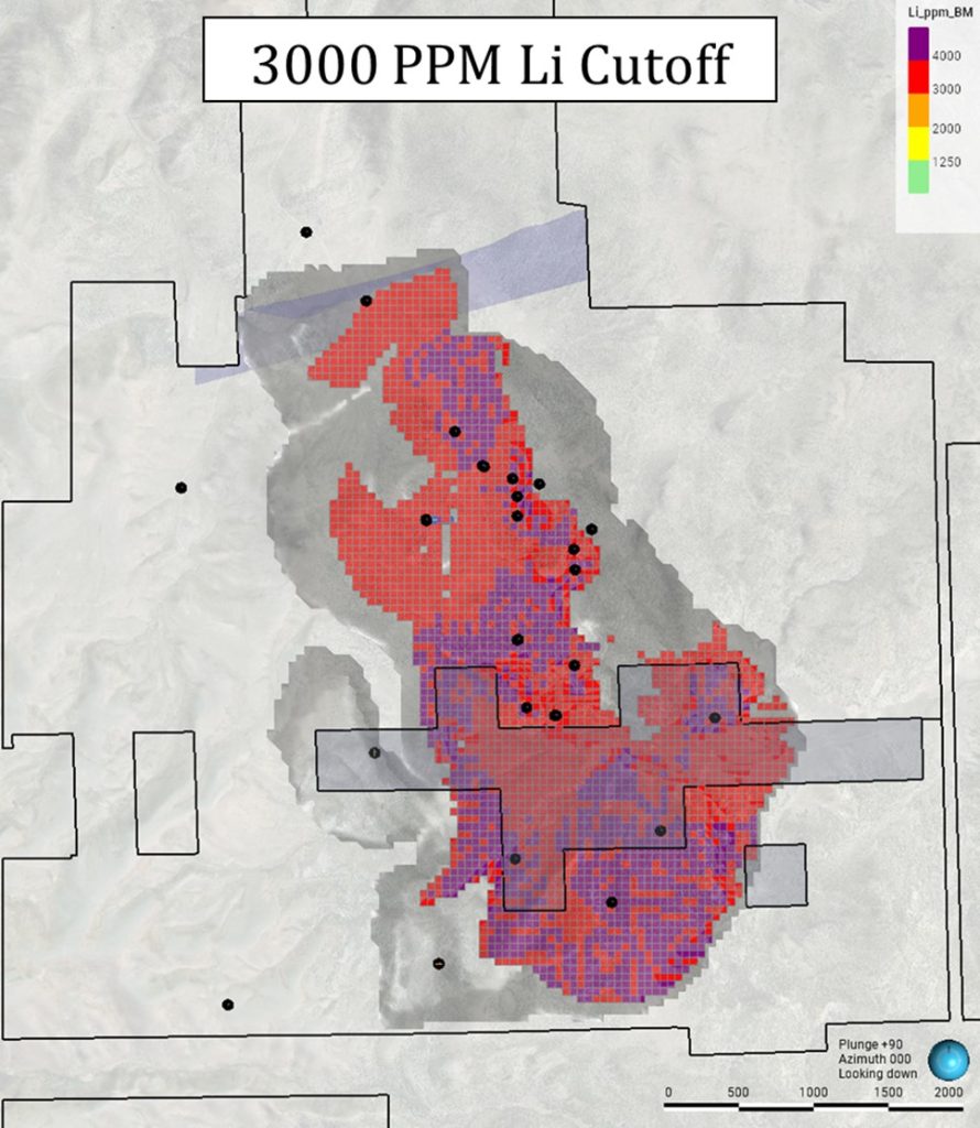 Figure 5: Plan view showing the Updated RE at the NNLP with a 3000ppm Li cutoff.