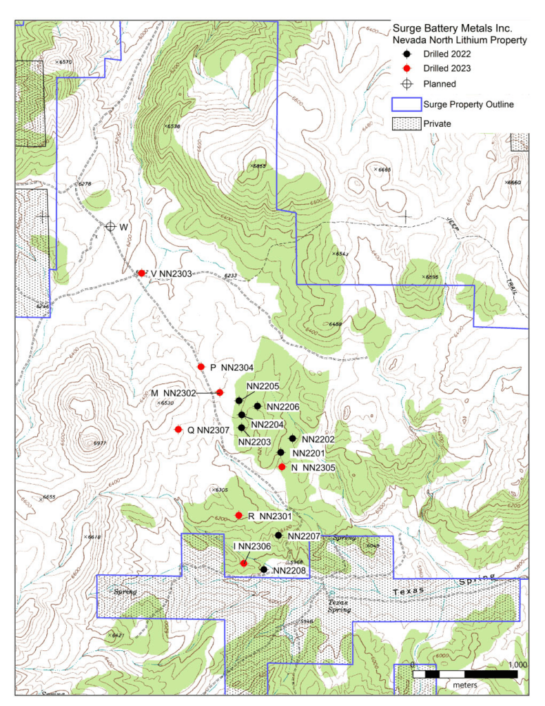 October 18, 2023: West Vancouver, BC; Surge Battery Metals Inc. (the “Company” or “Surge”) (TSXV: NILI, OTC: NILIF, FRA: DJ5C) is pleased to announce certified assay results on the Nevada North Lithium Project confirm mineralization extends 1500m to the northwest of 2022 drilling.