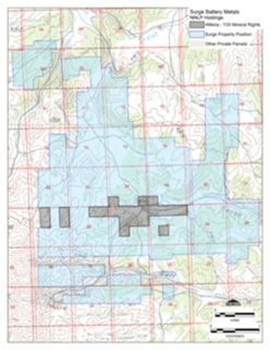 October 3, 2023: West Vancouver, BC; Surge Battery Metals Inc. (the “Company” or “Surge”) (TSXV: NILI, OTC: NILIF, FRA: DJ5C) is pleased to announce that it has entered into two mineral property purchase agreements to purchase a total of twenty-five (25%) of the mineral rights (the “Mineral Rights”) to private lands, comprised of four parcels, totaling 880 acres (the “Private Lands”) situated in Surge’s existing North Nevada Lithium Project (the “NNLP”). The Private Lands are shown on the attached map of the NNLP.